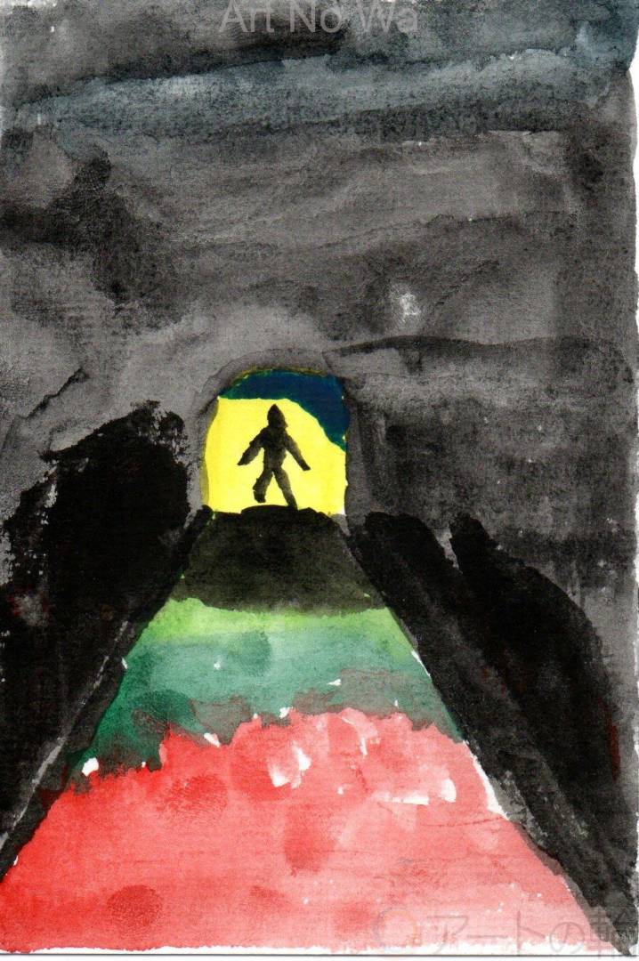 絶望していたときに、描いた物です。絵の中の人は、光に向かって歩いているのか?それとも、暗闇に入っていくところなのか?見る人によって、感じ方が変わる不思議な作品です。