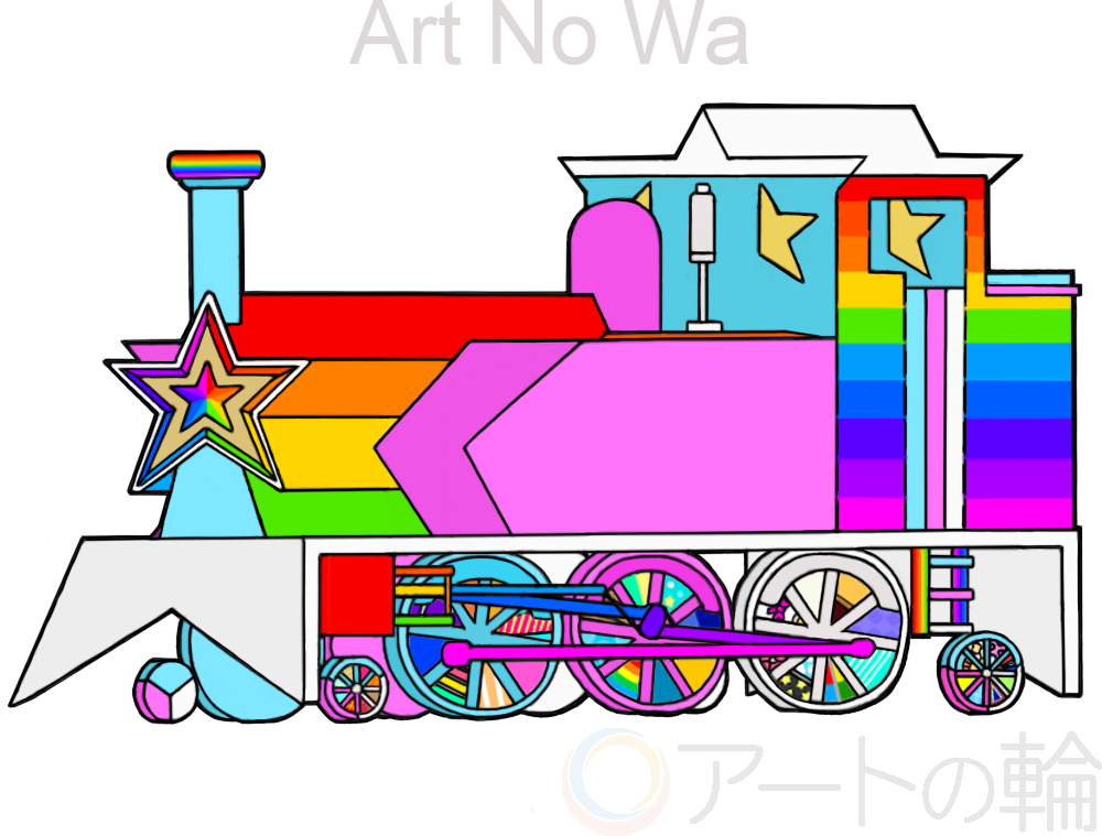 虹のスタートレインは未来に向かってどこまでもどこまでも進むよ。大人でも子供でも動物でもなんでもみんな一緒に乗れるよ。
