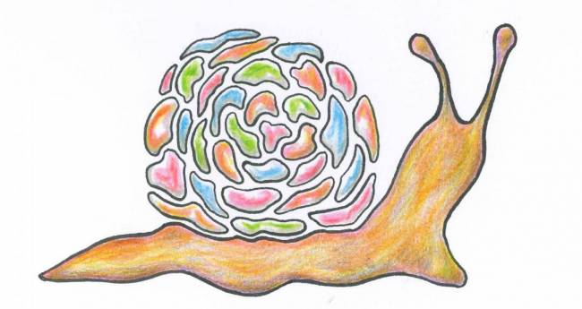 グミを背負ってグミに籠るカタツムリ。見た目はかわいいけどそのグミは食べられるのだろうか?そんなことを感じて描いてみた。