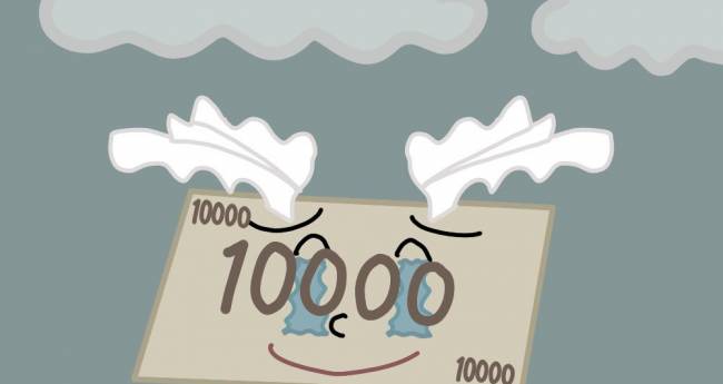 お金が飛んで泣いている。