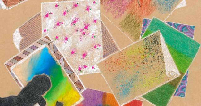 連作にして未来に向けて模索している姿を描いてみた。(1)幼少期、自由に創造力をはばたかせていた