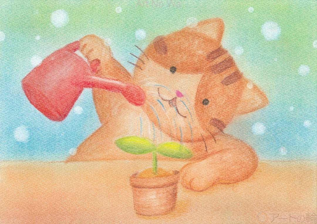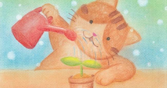 猫は一粒の種を撒きました。その種からは可能性に満ちた芽が出てきました。どんな葉っぱをつけるのか?どんな花を咲かせるのか?その花はどんな香りがするのか?可能性に満ちた植物を育てる猫は楽しみにしています。