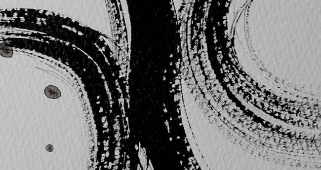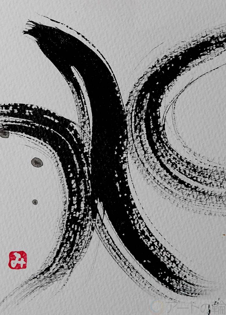 書道紙半紙に毛筆を使って墨汁で動く水のイメージを表現したものです。