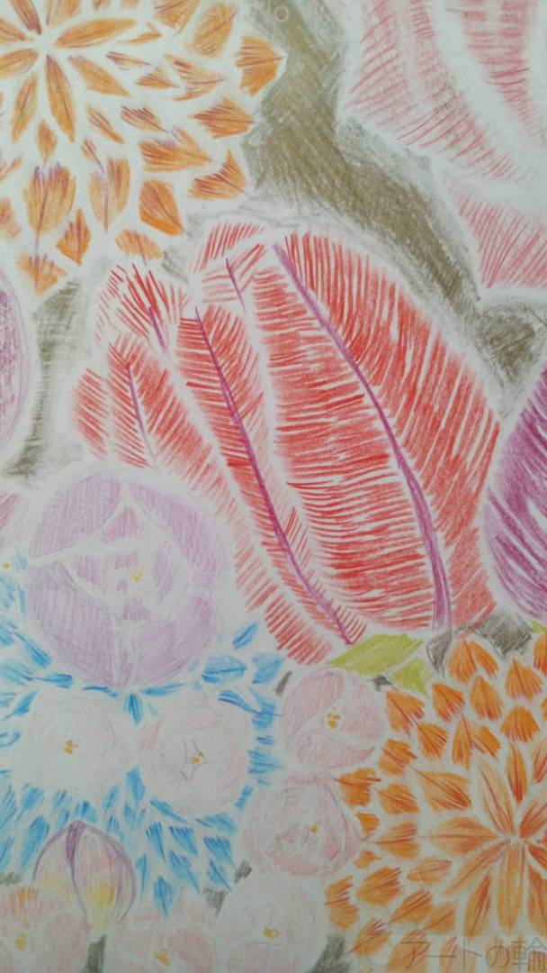 個性的な日本の花をかいた。ネギの花とか梅の花や薔薇の花