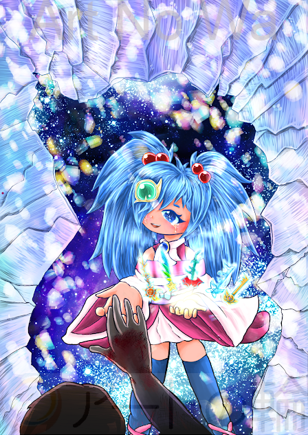 才能と可能性に無限の広がり…と考え思い浮かんだら未知なる宇宙へと最初のイメージを思いつきましたがたどり着くまでには試練の壁や障害が付き物なので壁乗り越えるというよりぶち抜いてしまいました。鍵のような物を持ってた少女は己の壁の向こう側でずっと信じて待っていたのでしょう