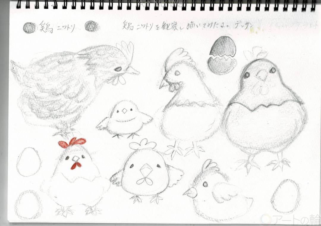 鶏の観察をしながら描いてみました。ニワトリさんは卵を産みます。朝ごはんは、よく卵を食べます。ニワトリさん。ありがとう。