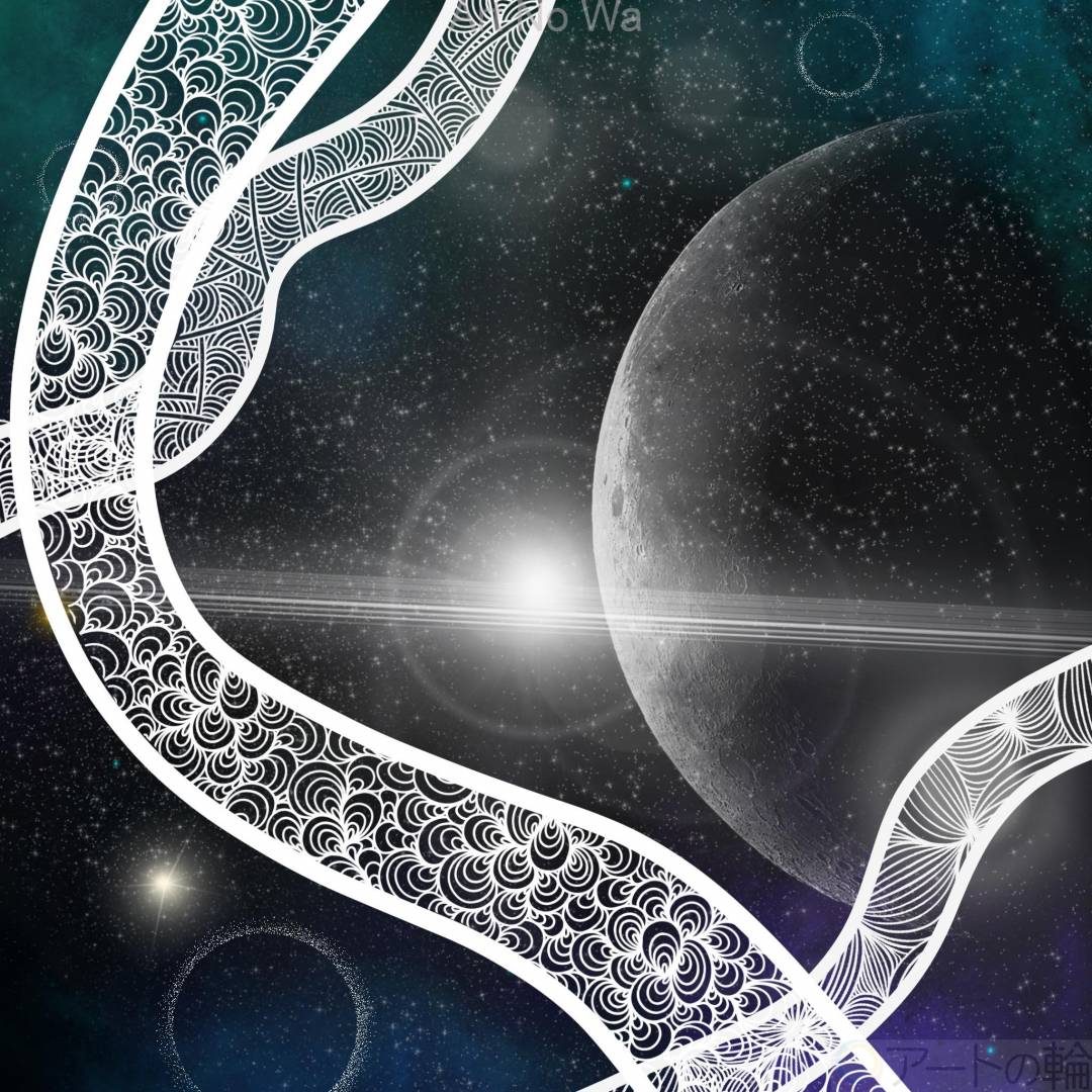 静かに広がる宇宙のなかで、 ゼンタングルの線がそっと道しるべになる。 心の奥にある小さな光と、遠い星とをつなぐ “わたしだけの架け橋”を描きました。