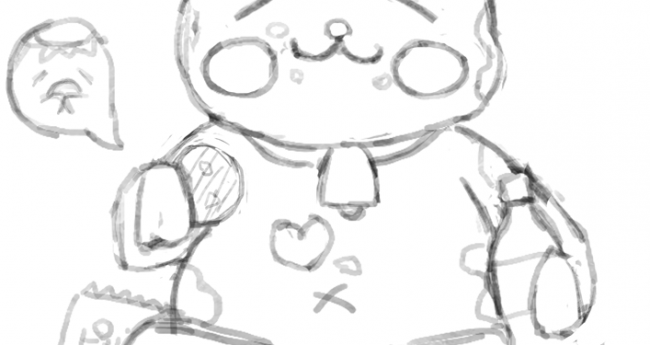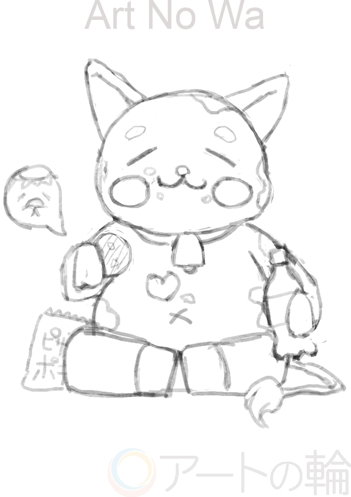 今日だけはちょっと自分にご褒美のチートデーなくーにゃん(KANAME USHIKUマスコットキャラクター)の下描きです。
