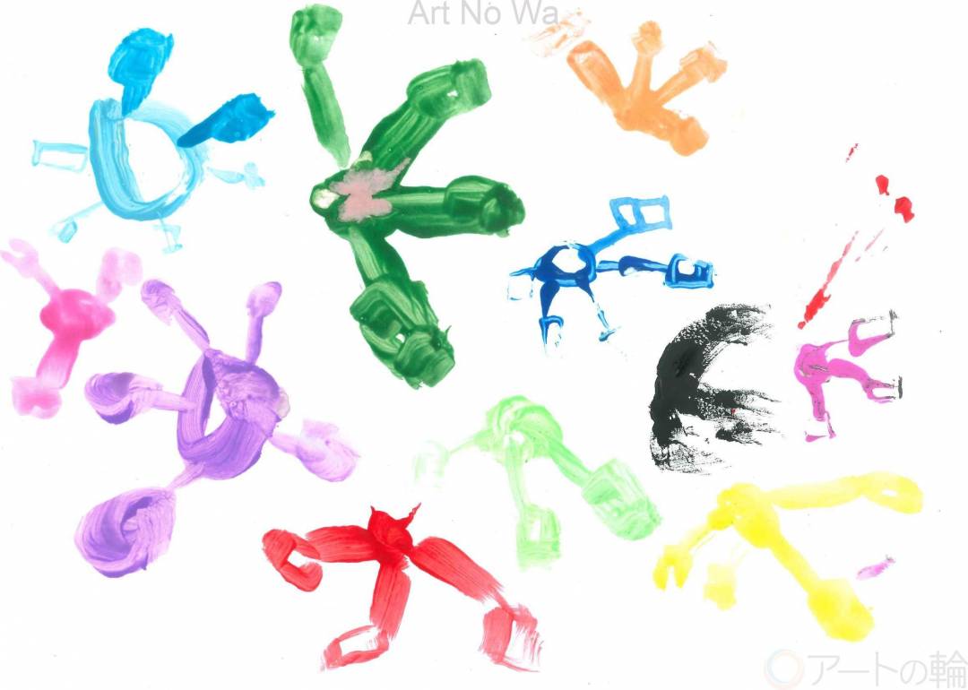 この作品「うごきだすカタチたち」は、色とりどりのかたちが画面の中を自由に動き回っているような、いきいきとした印象を与えてくれます。 赤・青・緑・紫など、はっきりとした色彩で描かれたかたちは、どれもユニークで個性的です。それぞれに表情や動きがあるように感じられ、まるで生命を宿したかのように、今にも画面から飛び出してきそうです。 これらのかたちは、生き物にもロボットにも、宇宙人にも見えます。はっきりとした答えがないからこそ、見る人それぞれが自由に想像できる――そんな「無限の可能性」が、この作品には込められています。 動き、跳ね、踊りだすカタチたちは、境界のない自由な世界の象徴です。枠にとらわれない表現の中に、のびのびとした創造力と、見る人の心をくすぐる楽しさがあふれています。