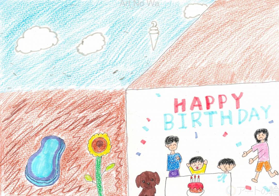 8月の誕生日が自分と長男がいて、将来的にはこういう家族で居たいなって思って描きました