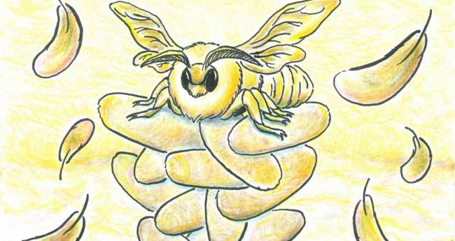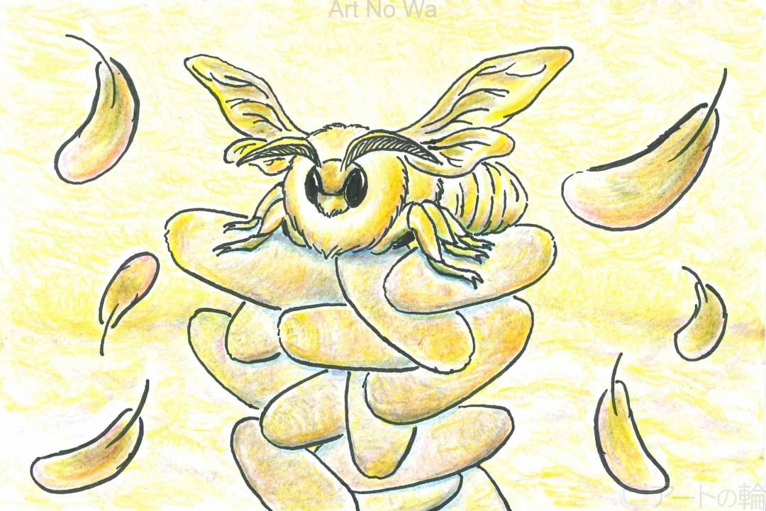 唯一家畜化された昆虫、蚕。その成虫はまるで天使のような姿。しかし、実用的なのは繭まで。成虫は価値のない存在。美しくも無駄な存在。そんな蚕の儚さを表現。