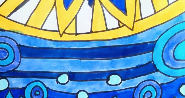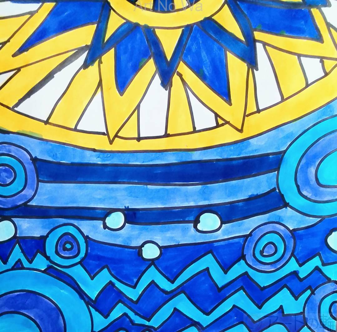 空を照らしている青い太陽を描いてみました。