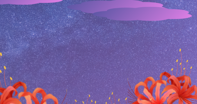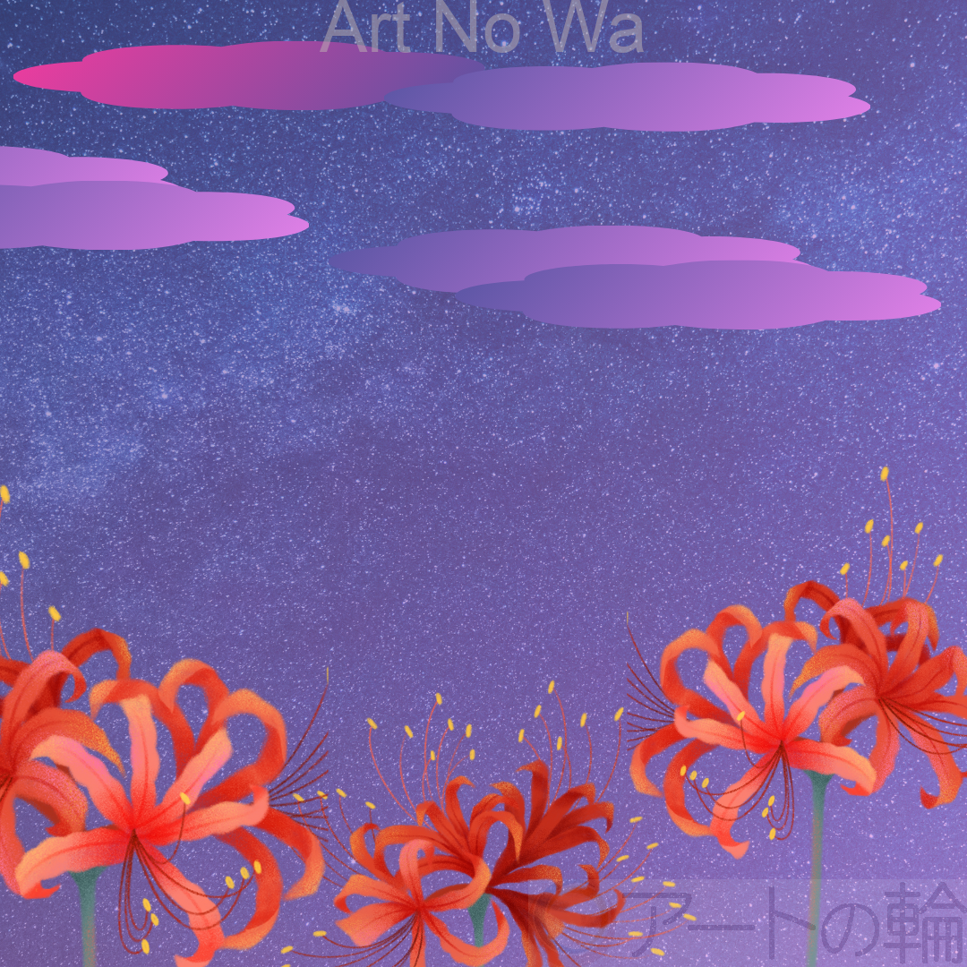 秋の風物詩である彼岸花と、わずかに残っている夕焼け雲、夜への移り変わりを表現しました。