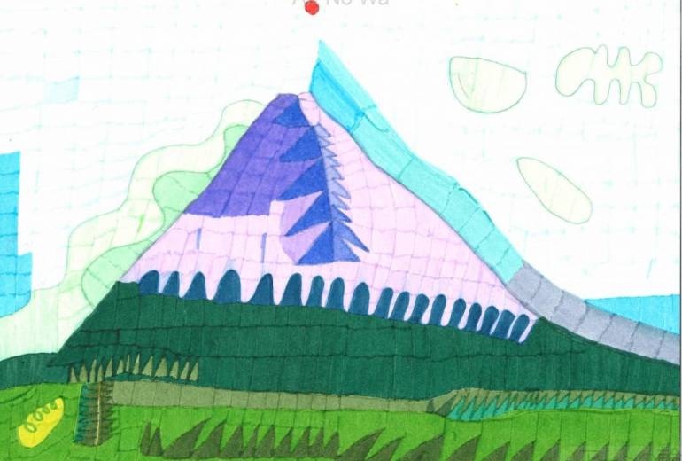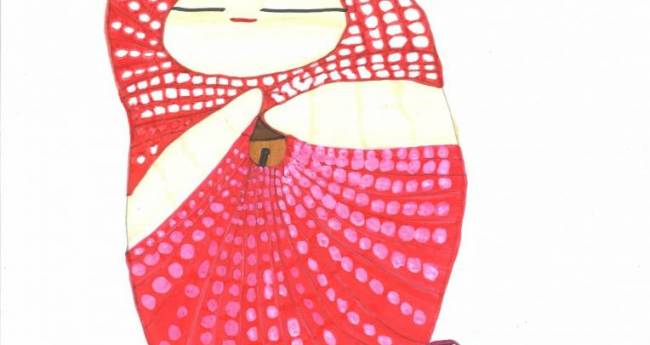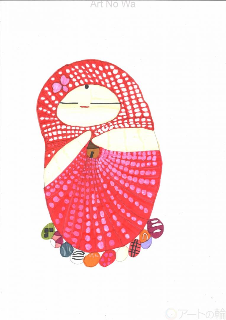 アトピーのため、いつもかゆいかゆいの連続。ママが孫の手で、やさしくポリポリしてくれます。お地蔵さまと一緒に、「ありがとう」とママに手を合わせます。お地蔵さまも、手を合わせてくれます。可愛いお地蔵さま人形を机に置いて、絵を描いています。お地蔵さまは相棒です。