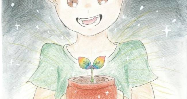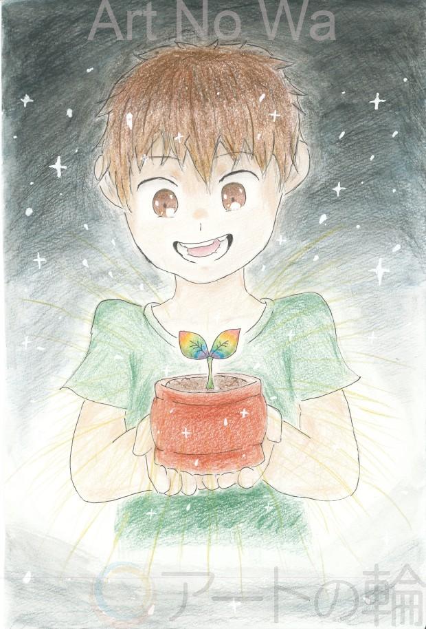 若いものには才能や無限の可能性があると思い、未来にわくわくしているイメージで子供と新芽を描きました。