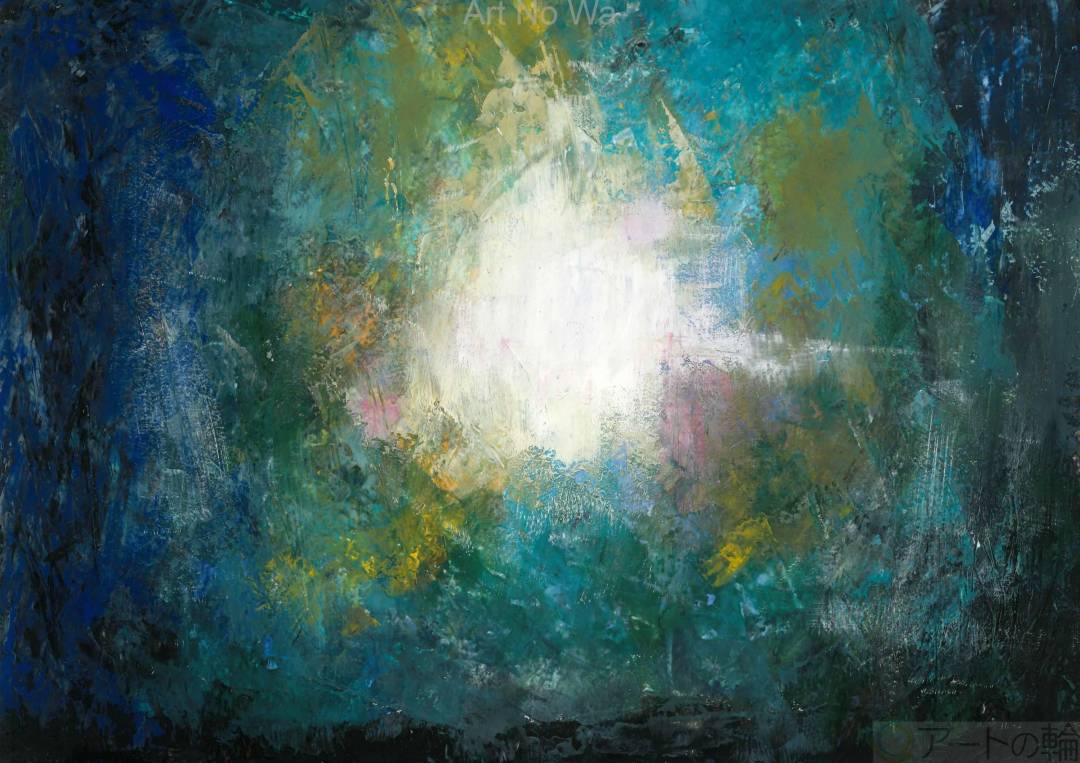 暗闇(海の中や森の中や非現実の中など)から見上げた先にある光を表現しました。暗い色から明るい色へ好きなように塗っていけて楽しかったです。