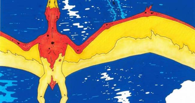 現実,非現実,自然,海,空,太古,黄色,水色,青,白,動物,想像上の生き物,明るい,たのしい,わくわく,どきどき,3D