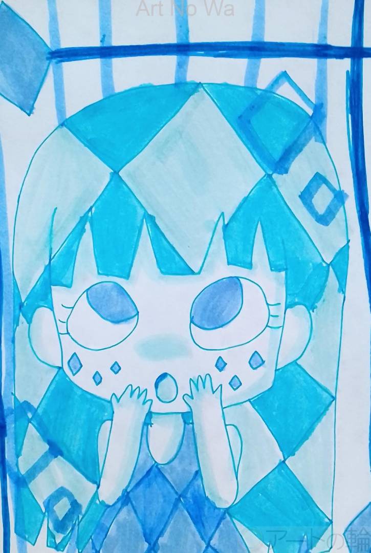水色が爽やかなダイヤ模様がある髪の女の子を描いてみました。