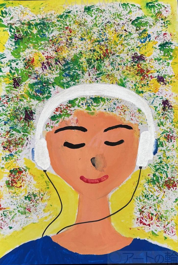 音楽を聴きながら色々な髪型を楽しんで、ワクワクしている様子を描きました