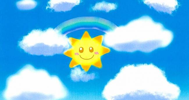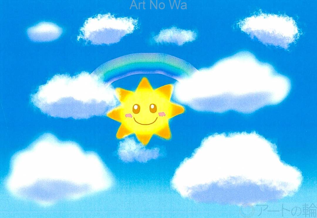 かわいい太陽と虹をあしらって青空を描きました。