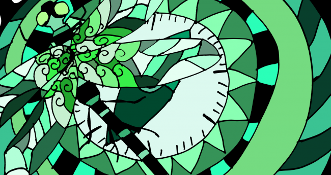 羅針盤を見て方向を確認しているオニヤンマを描いてみました。