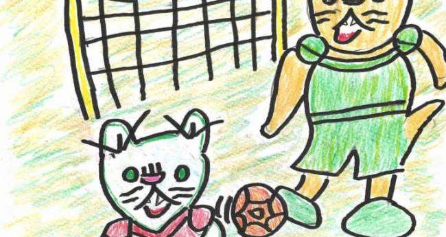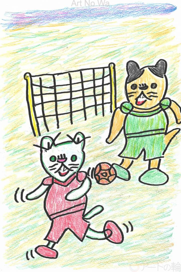 お休みしている時にサッカーをしているにゃんこを思い出して描いてみました