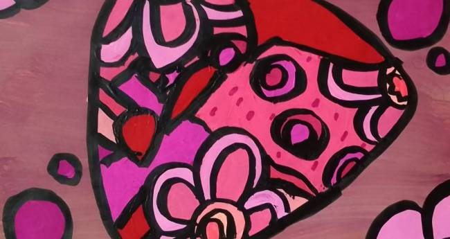 花が開くようにはじけているピンク色の苺を描いてみました。