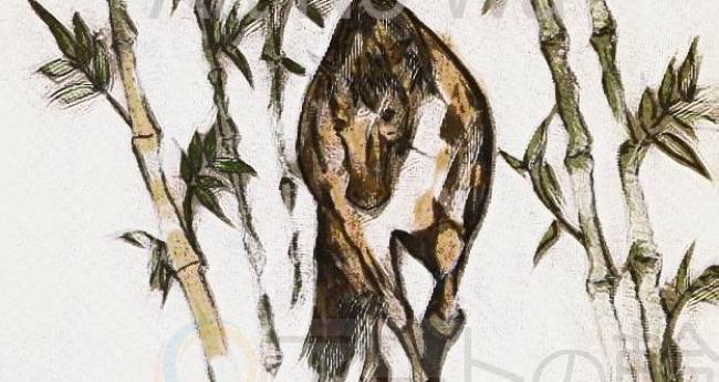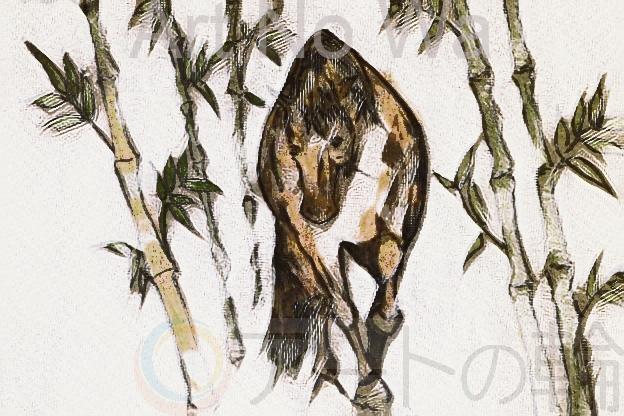 涼しく歩いている中には、何処か迫力を彷彿とさせています。落ち着いてゆっくりと歩く馬を表現しました。