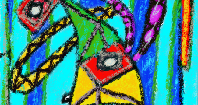 非現実,屋内,過去,未来,赤,黄色,青,人物,暗い,2D