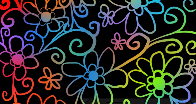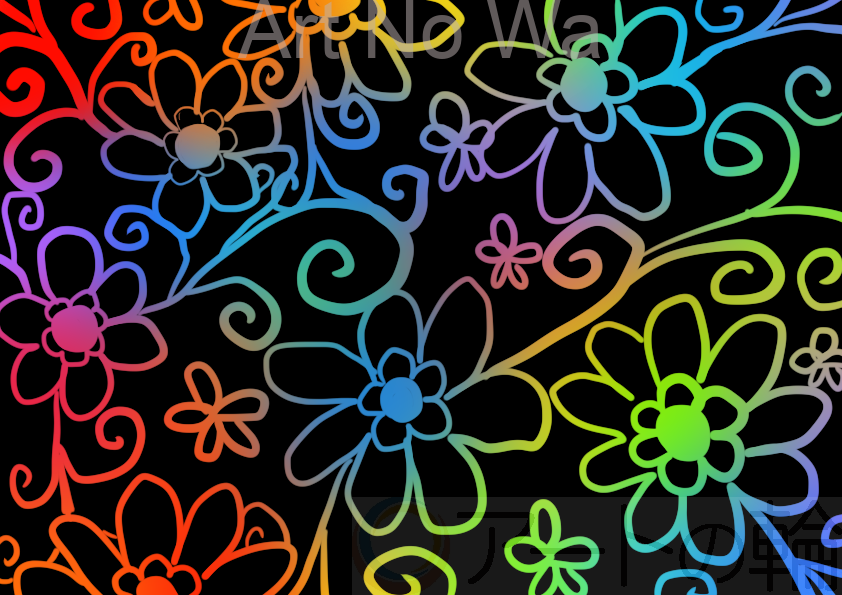 平和を願うように七色に咲いている花をスクラッチアート風に描いてみました。