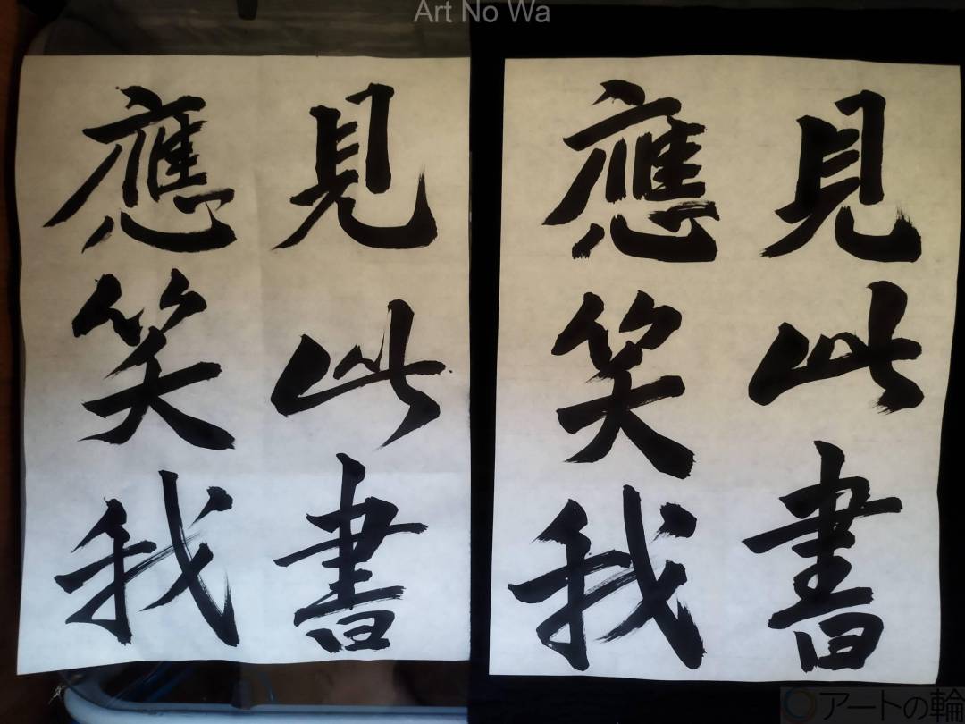 右が、100均で買った普通の筆で書いた題。左が、奈良で売っている、上等な筆のうち一番安いので書いた題。筆の個性が出るので、私は弘法ではありません(泣)。