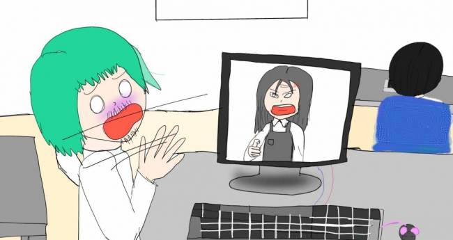 仕事するために会社のパソコンを開いたら誰かのイタズラで妻の怒った顔がびっくり