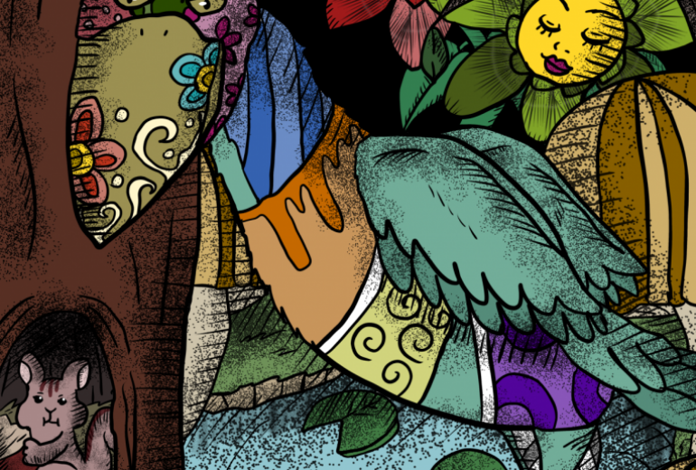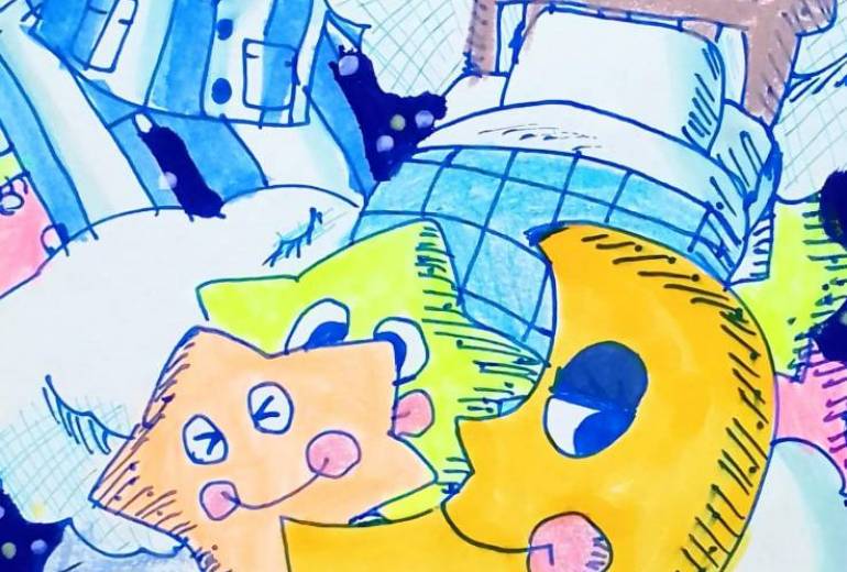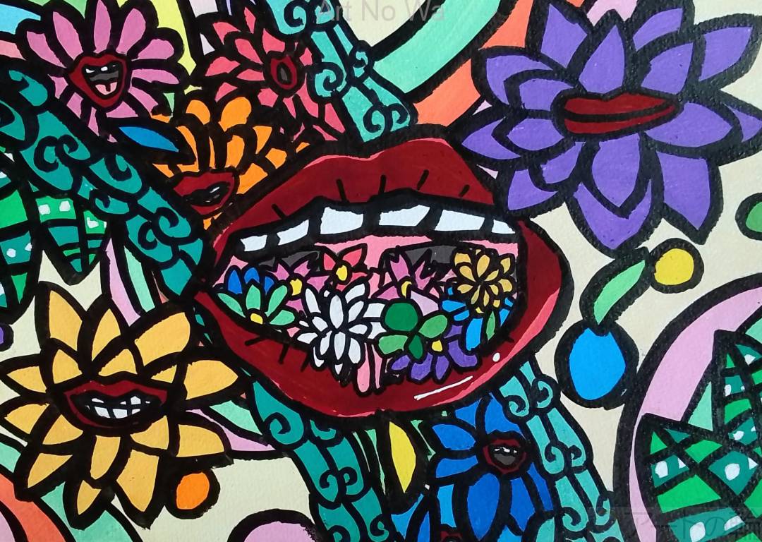 挨拶や優しい言葉で花が口から咲いている様子を描いてみました。