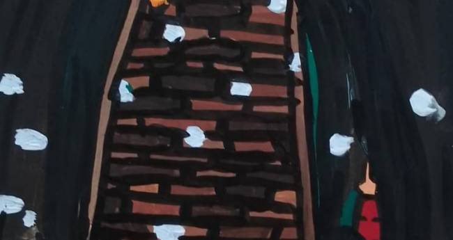 雪が降る中沢山の並木がページェントの光でいっぱいな様子を描いてみました。それを見ている観客の人達も描いてみました。