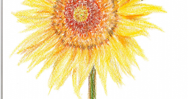 クレヨンのみで風景画、静物画、名画模写などを描いています。 作品によっては鉛筆を使用しています。