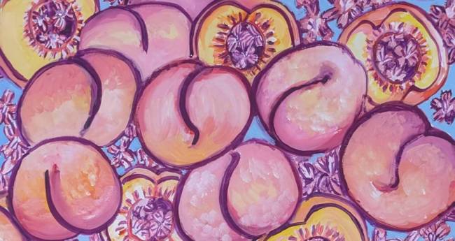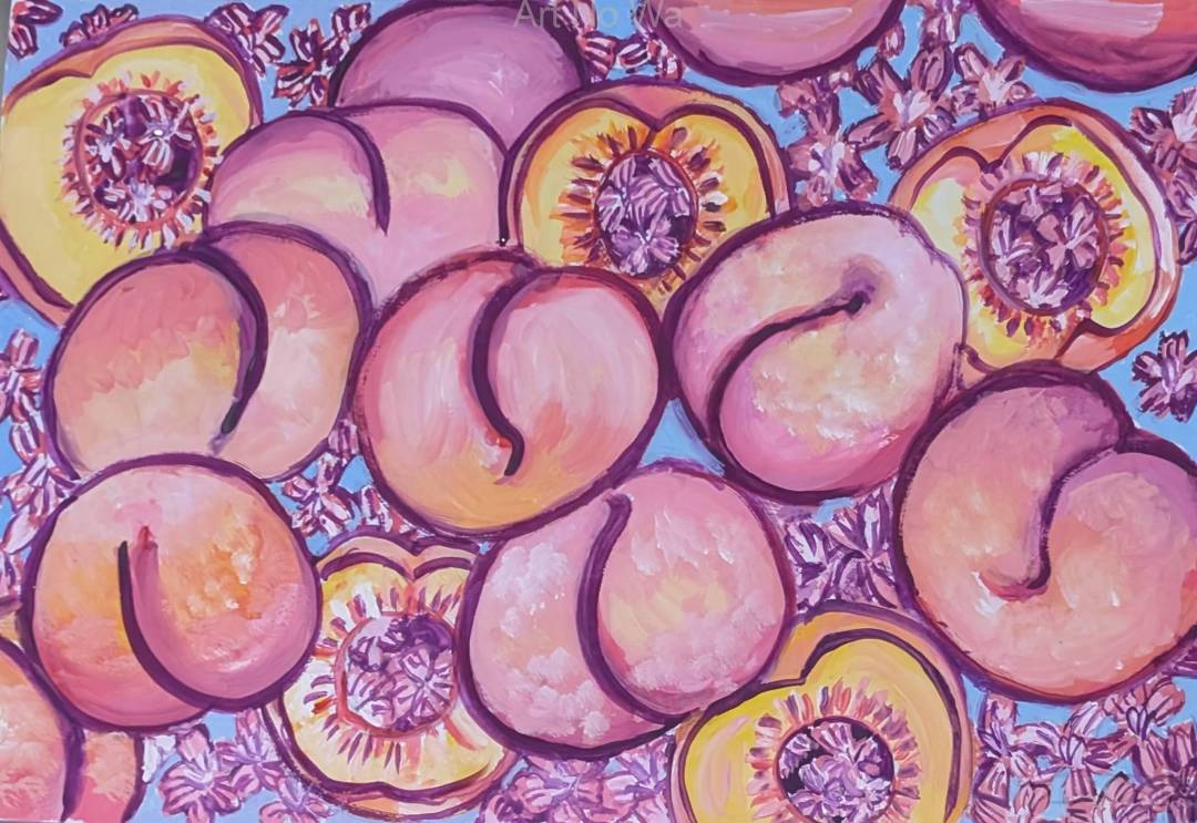 母が買って来てくれた桃が美味しかった。道端に咲いてた撫子が綺麗だから描いてみた。