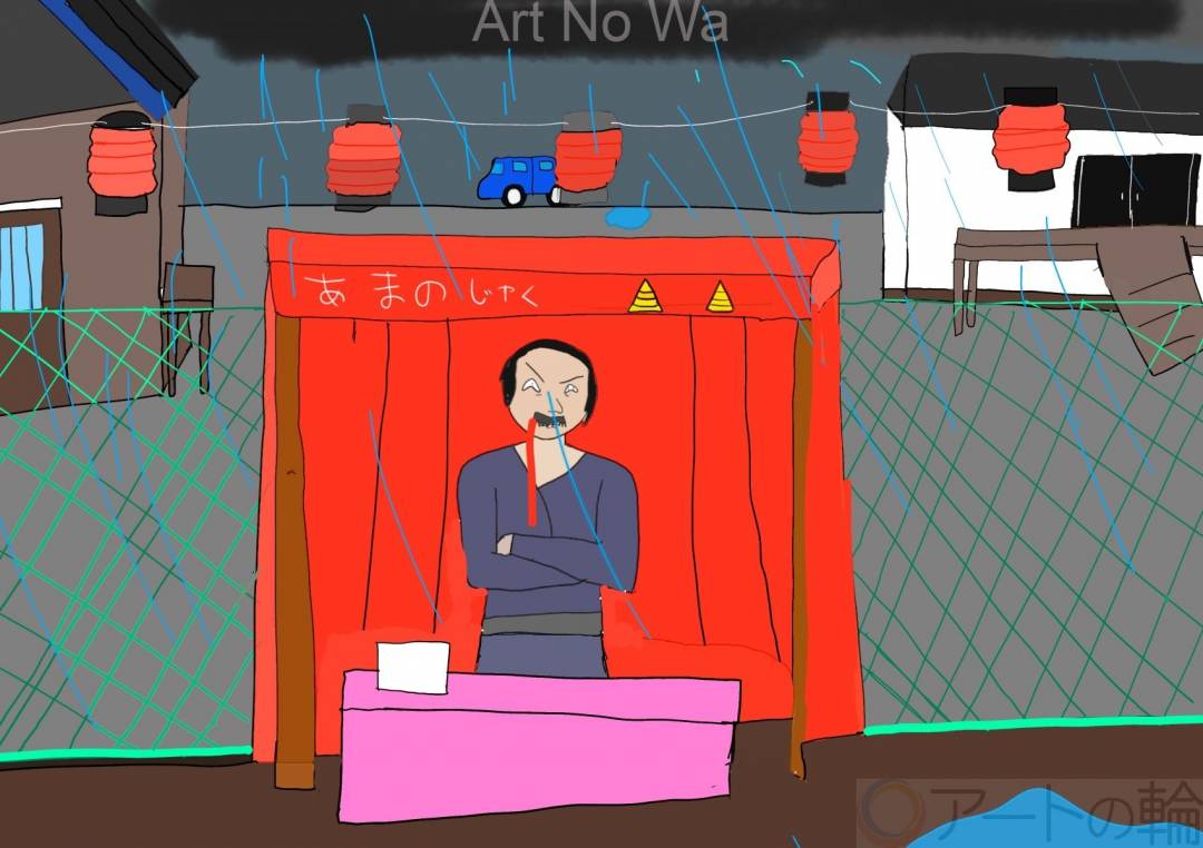お祭りの日に奇しくも雨が、雨が降っても曲げない頑固親父果たしてお客さんが来るのか、ピュアな心は自然に勝てるのか?。