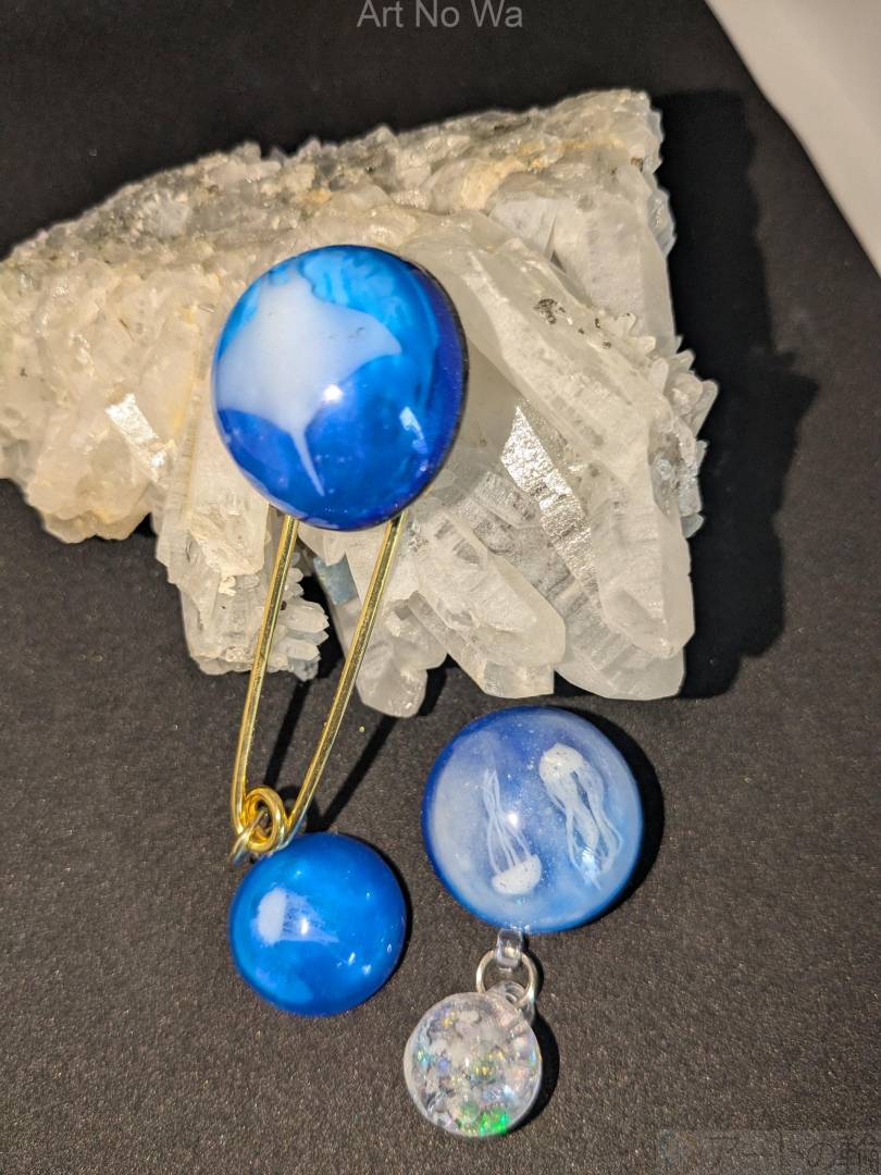 水族館に行ったよ 垂れ下がるデザインのブローチ2点を、作った