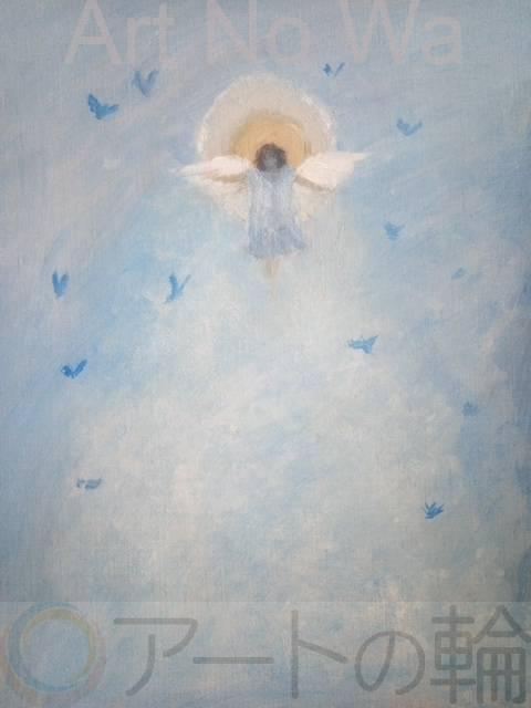 こうふくのあおいえぷろんてんし(だいじょぶたよしあわせのとりたちととべるよ、こうふくのつばさをしあわせになれるよ!いつかかぞくのところにとんでおいで!かあさん)
