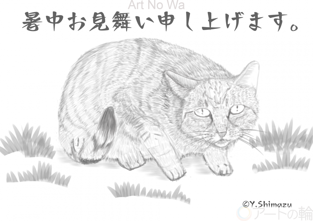 暑中お見舞い申し上げます。野生っぽい猫です。猫としての迫力がありました。メディバンペイントで描きました。