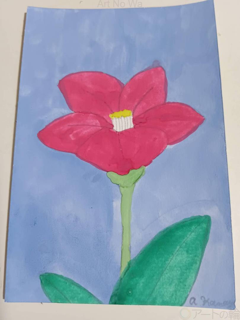 冬空に赤い椿が綺麗で思わず筆を取りました。画像で残して家で描いてみました。とても綺麗な赤い花でした。