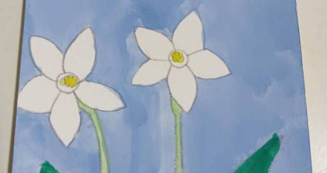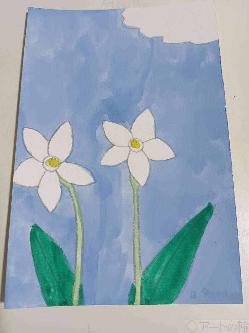 春に咲いた水仙を携帯で撮影し絵にしました。暖かな気温でお散歩して見つけたお花でとても印象深かったです。