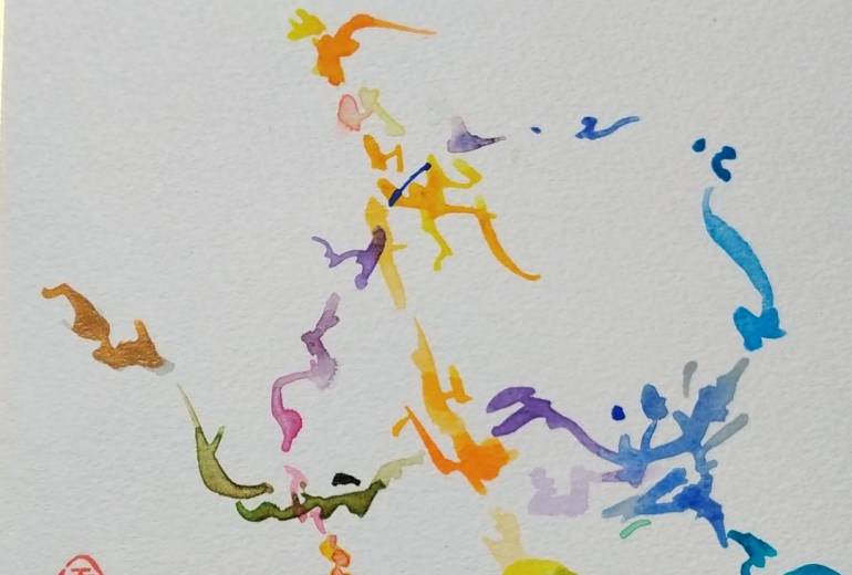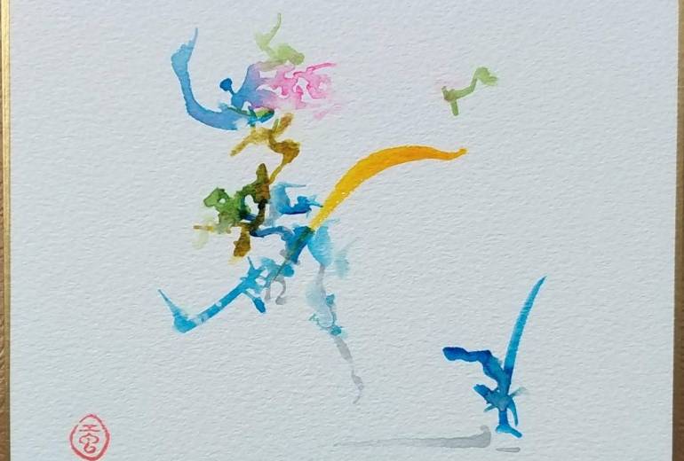 ハートの奥に広がるイメージの世界を表現したくて、2023年秋頃から、色のグラデーションを楽しみながら、描いています。絵は、大空で繋がるみんなへのラブレターです。