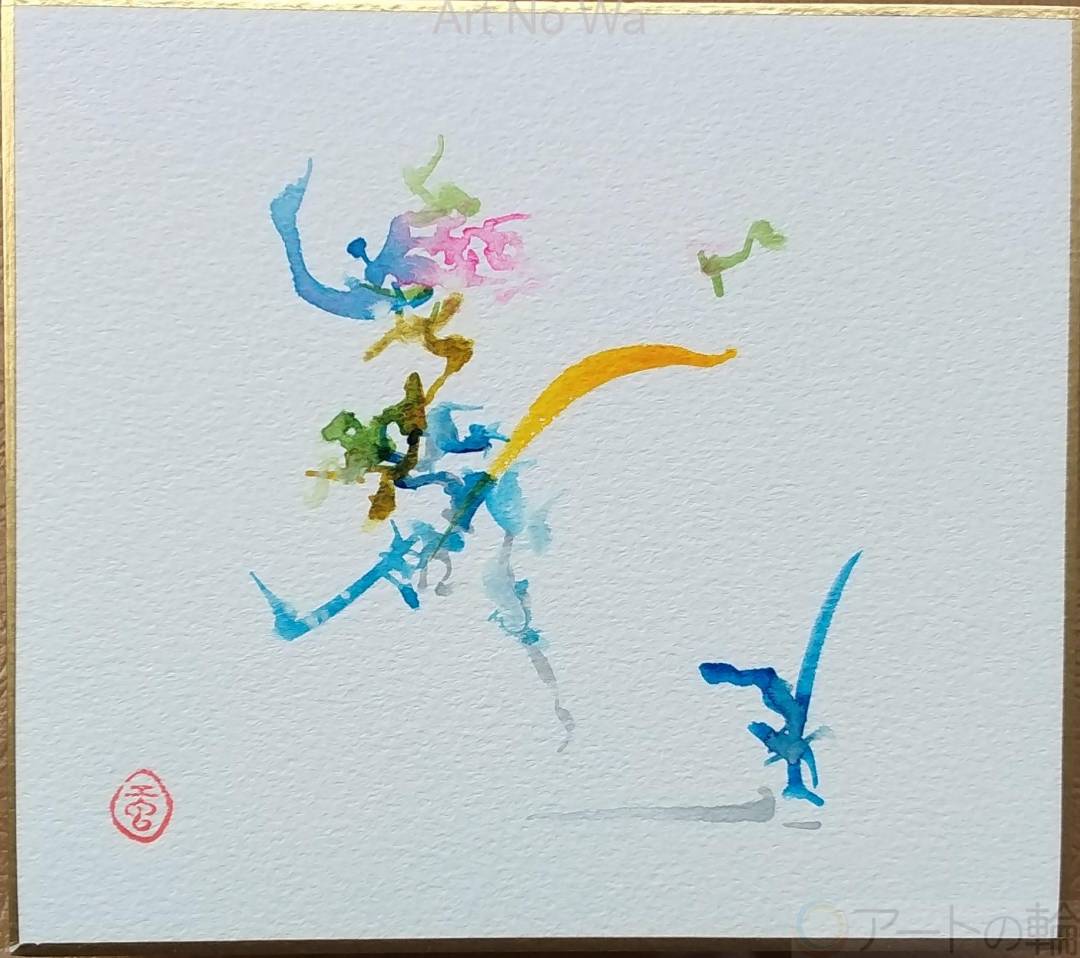 ハートの奥に広がるイメージの世界を表現したくて、2023年秋頃から、色のグラデーションを楽しみながら、描いています。絵は、大空で繋がるみんなへのラブレターです。