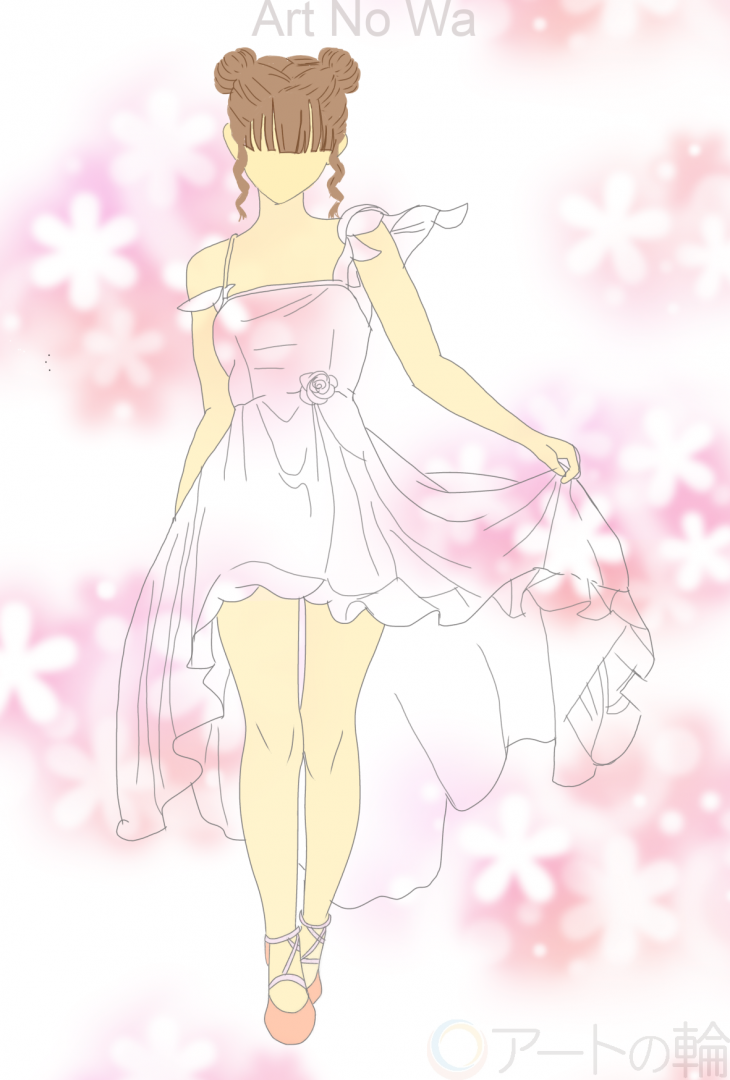 服に柄や色を付けずに、背景を生かし一体感を出しました