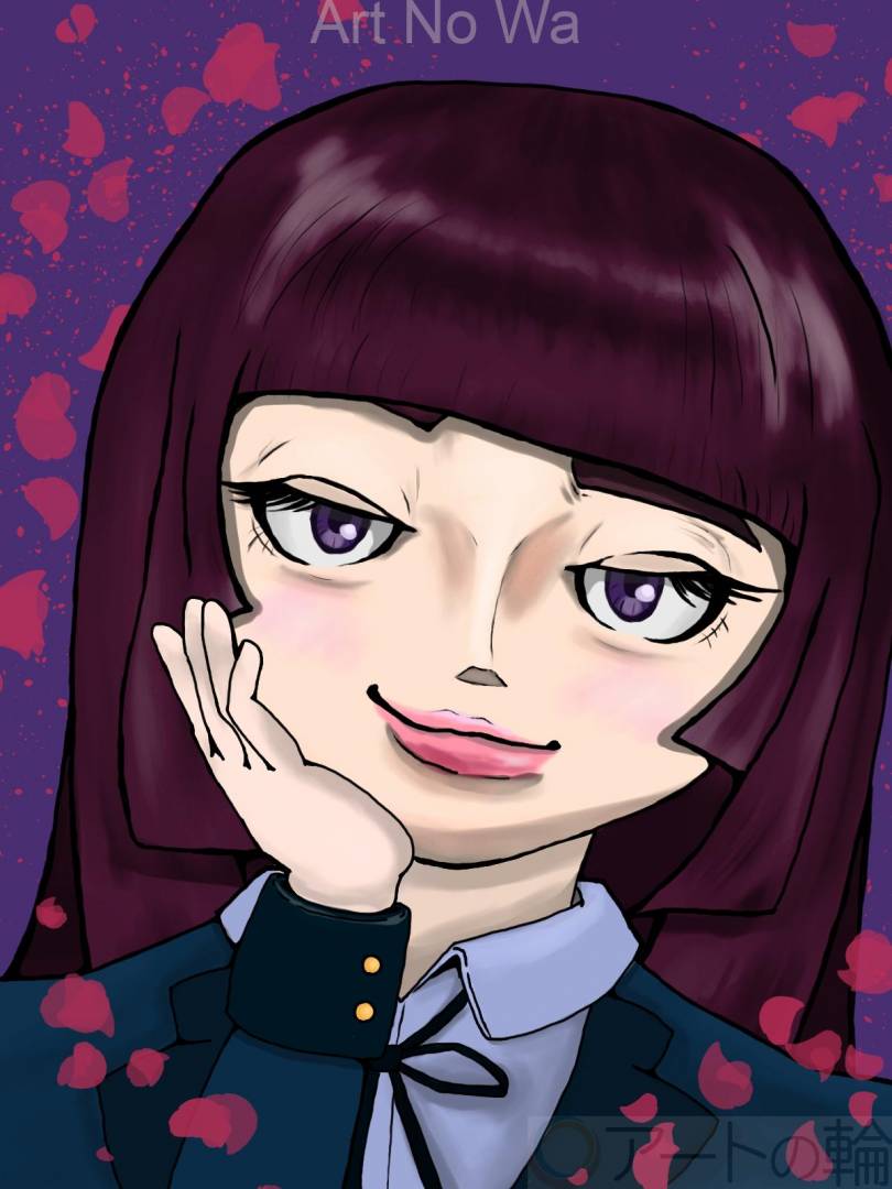 何か企むような表情で頬杖をつくミステリアスな少女のイラストです。