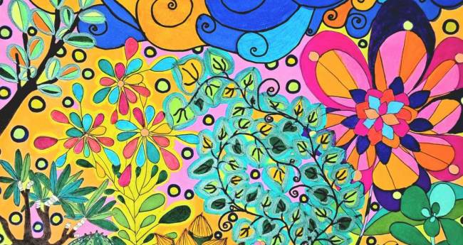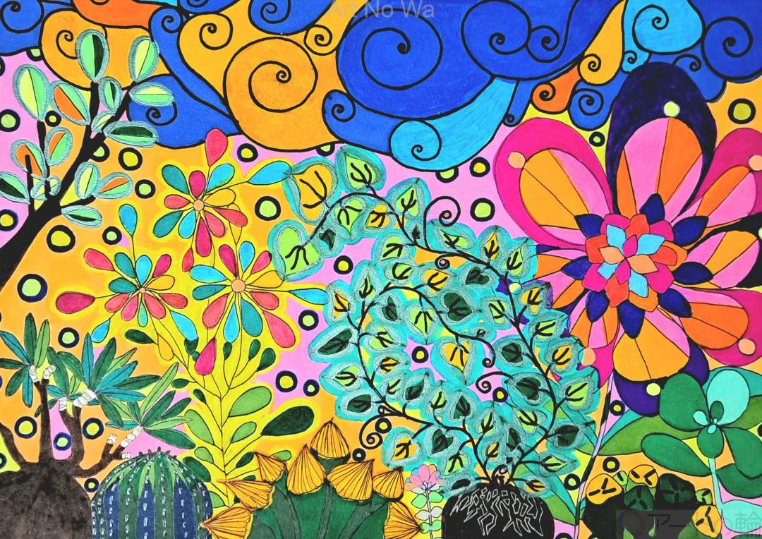 現実,屋外,自然,現在,オレンジ,黄色,緑,水色,青,紫,植物,明るい,かわいい,わくわく