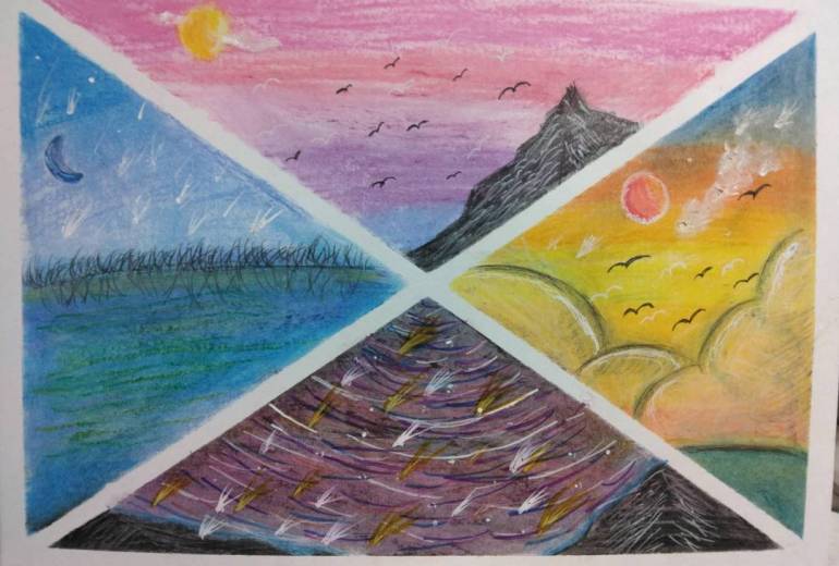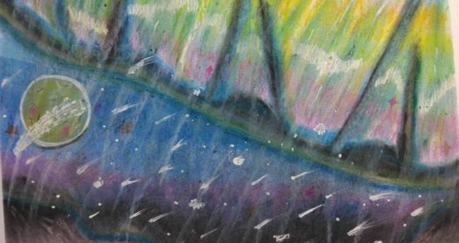 オーロラを様々な色を使い色鮮やかになるように描きました