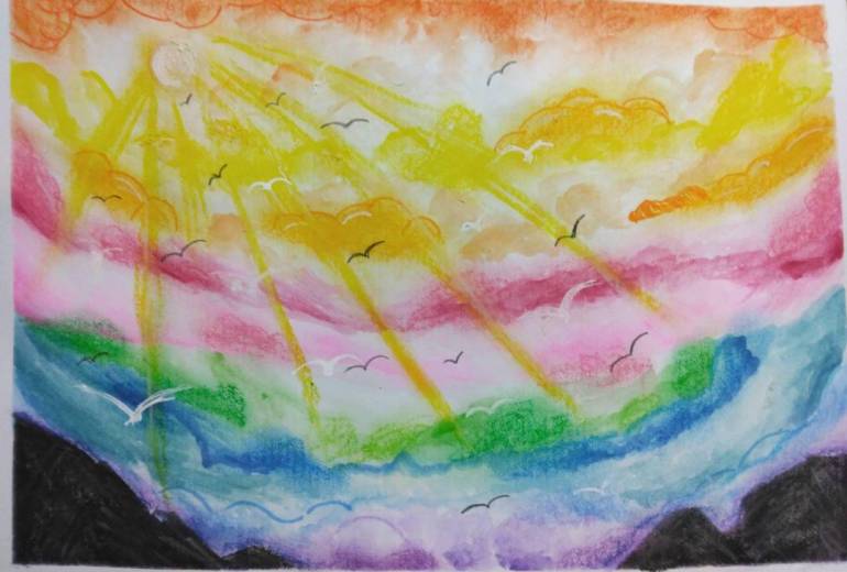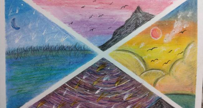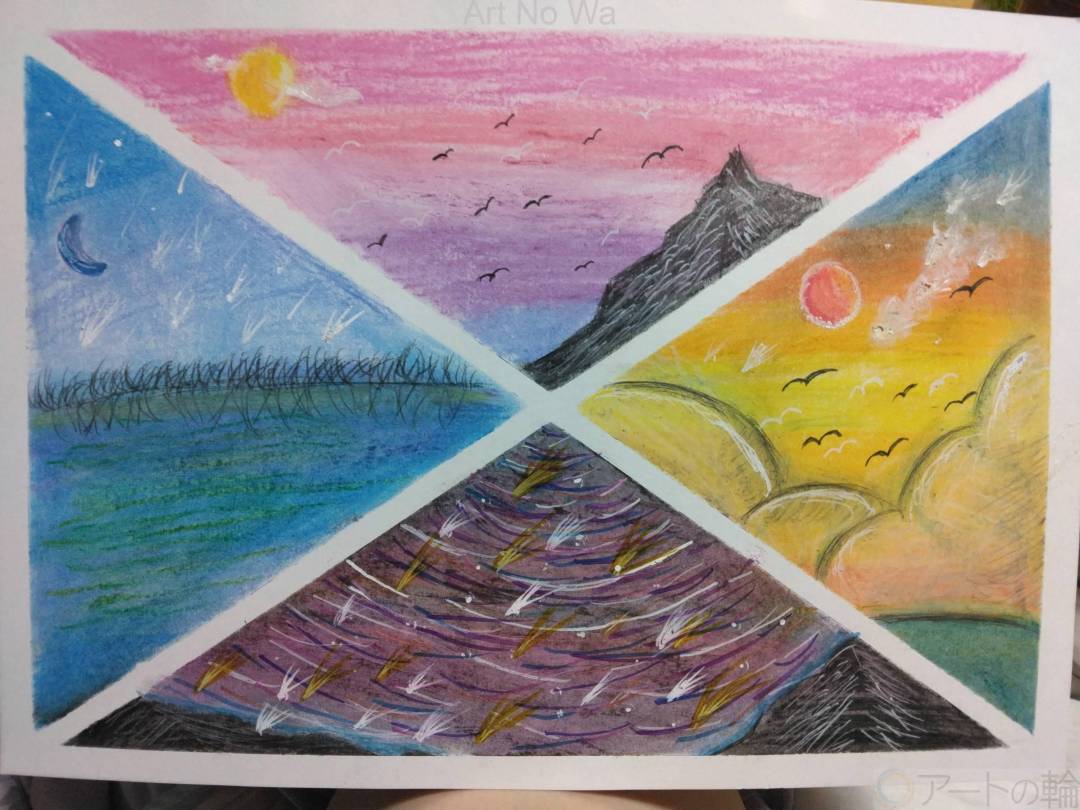 四季の空はこんな風に見えるのかなと想像しながら描きました。四季の空の違いを楽しんで頂けたらなって思います。