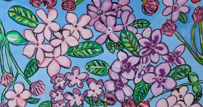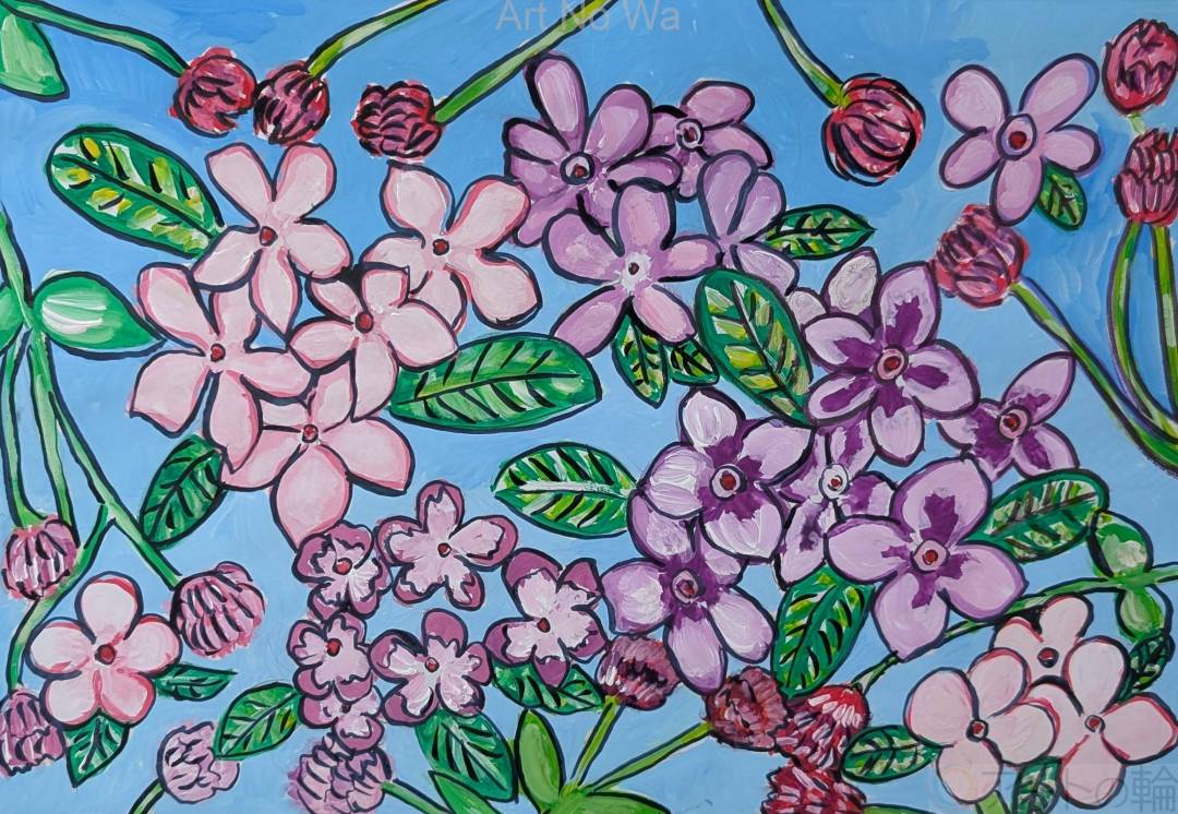 小学3年生の頃学校の先生が読書感想画のコンクールをすすめて参加したら入賞したきっかけで母のすすめもあり絵を描くのが好きになりました。特に花が好きで紙に大好きな花…